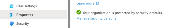 - At the bottom of the page select "Manage security defaults".